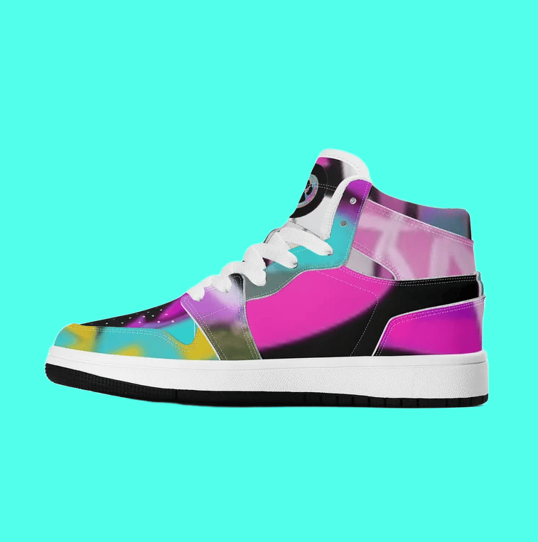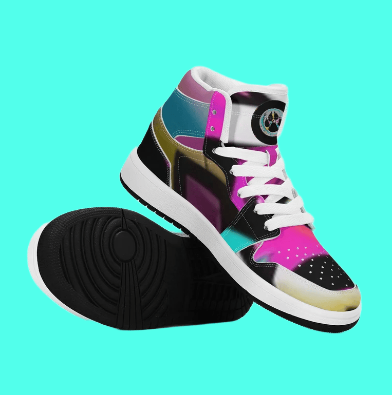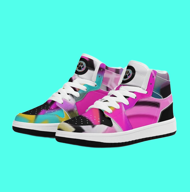 Ait, Sky, Horizon high tops explode with street style flair, wrapped in bold, abstract artwork that captures the energy of the city and the freedom of the open sky. Bright tones swirl and clash in a dynamic mix of shapes and colors, turning each sneaker into a mini masterpiece. Perfect for kids with big imaginations, these shoes bring art, adventure, and attitude to every step.