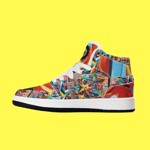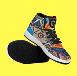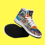 Kick Starters high tops light up the streets with bold, abstract artwork in bright, energetic tones. Bursts of color collide in dynamic patterns, creating a design that’s as playful and unstoppable as the kids who wear them. With every step, they spark imagination, confidence, and style—perfect for turning the everyday sidewalk into their personal stage. These sneakers aren’t just footwear—they’re the first step to standing out.