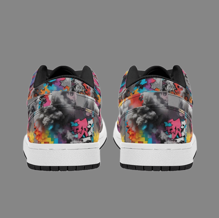 Smoke Screen high tops blend edgy street style with swirling smoke graphics in sleek shades of grey, making the bright, bold colors pop even more. The design fuses urban energy with a cool, mysterious vibe, perfect for kids who like to stand out while keeping it effortlessly stylish. Every step is a mix of vibrant fun and street-smart attitude—turning the playground into their personal runway.
