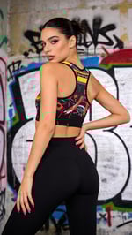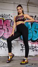 Ignite your workout with Streetburn — a bold, padded sports bra inspired by retro graffiti and urban grit. Featuring static line patterns and fiery red and yellow tones on a sleek black background, this piece fuses street art energy with high-performance support. Whether you're hitting the gym or the pavement, Streetburn brings fierce style and confidence to every move.